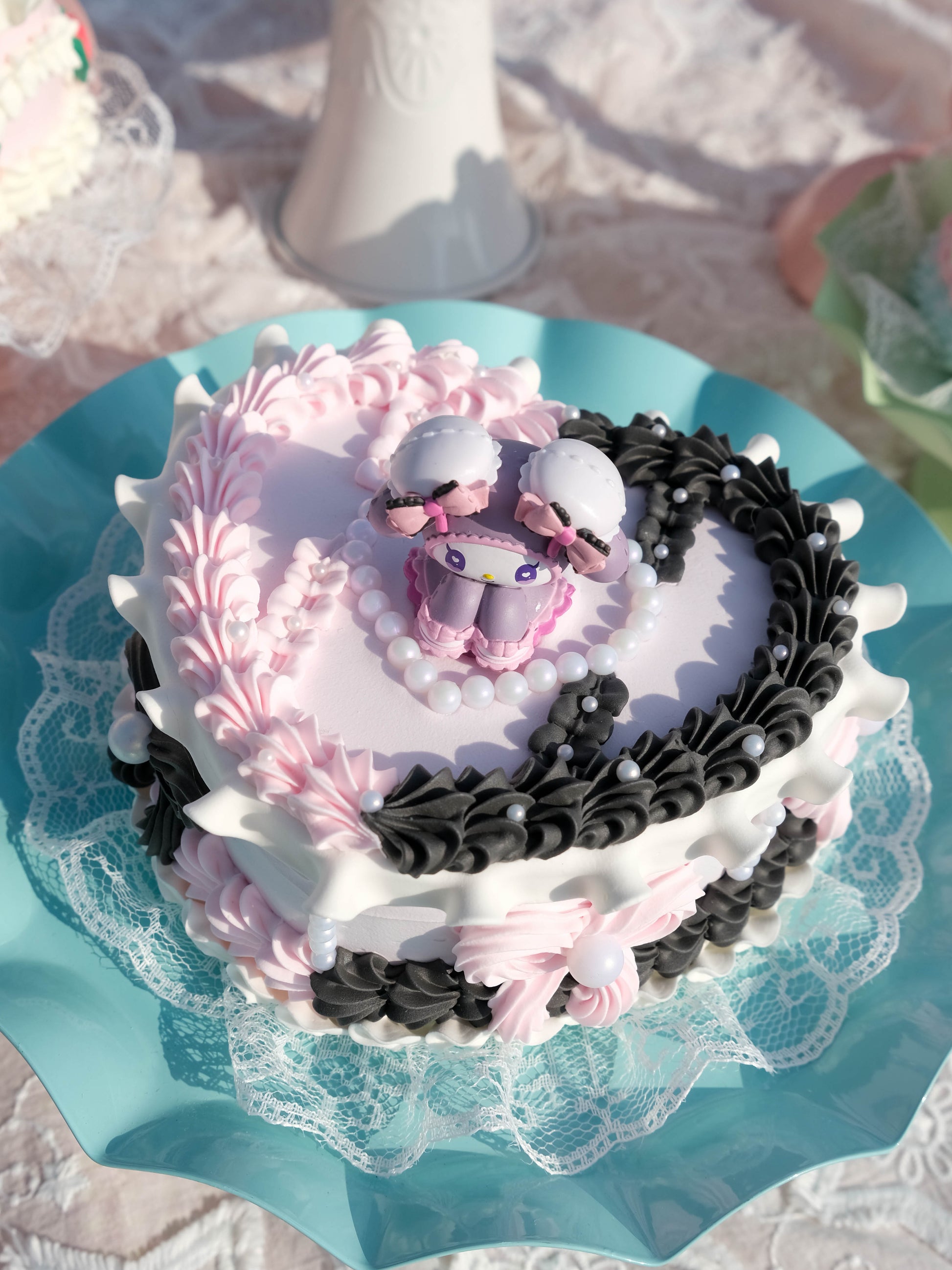 ❤️ A touch of lace ruffle on the bottom to elevate the elegance of the cake.