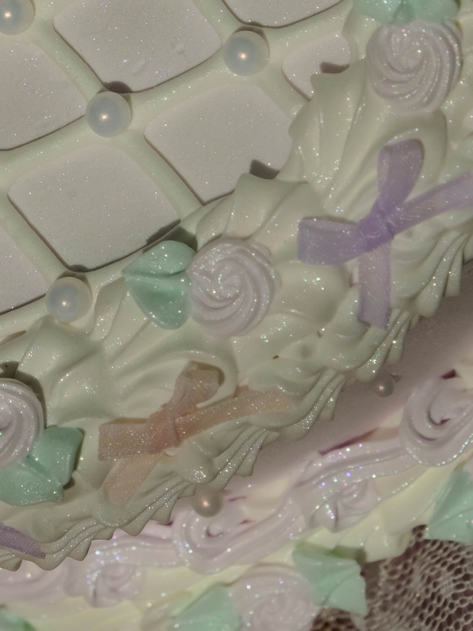 ❤️ Un toque de volante de encaje en la parte inferior para realzar la elegancia del pastel.
