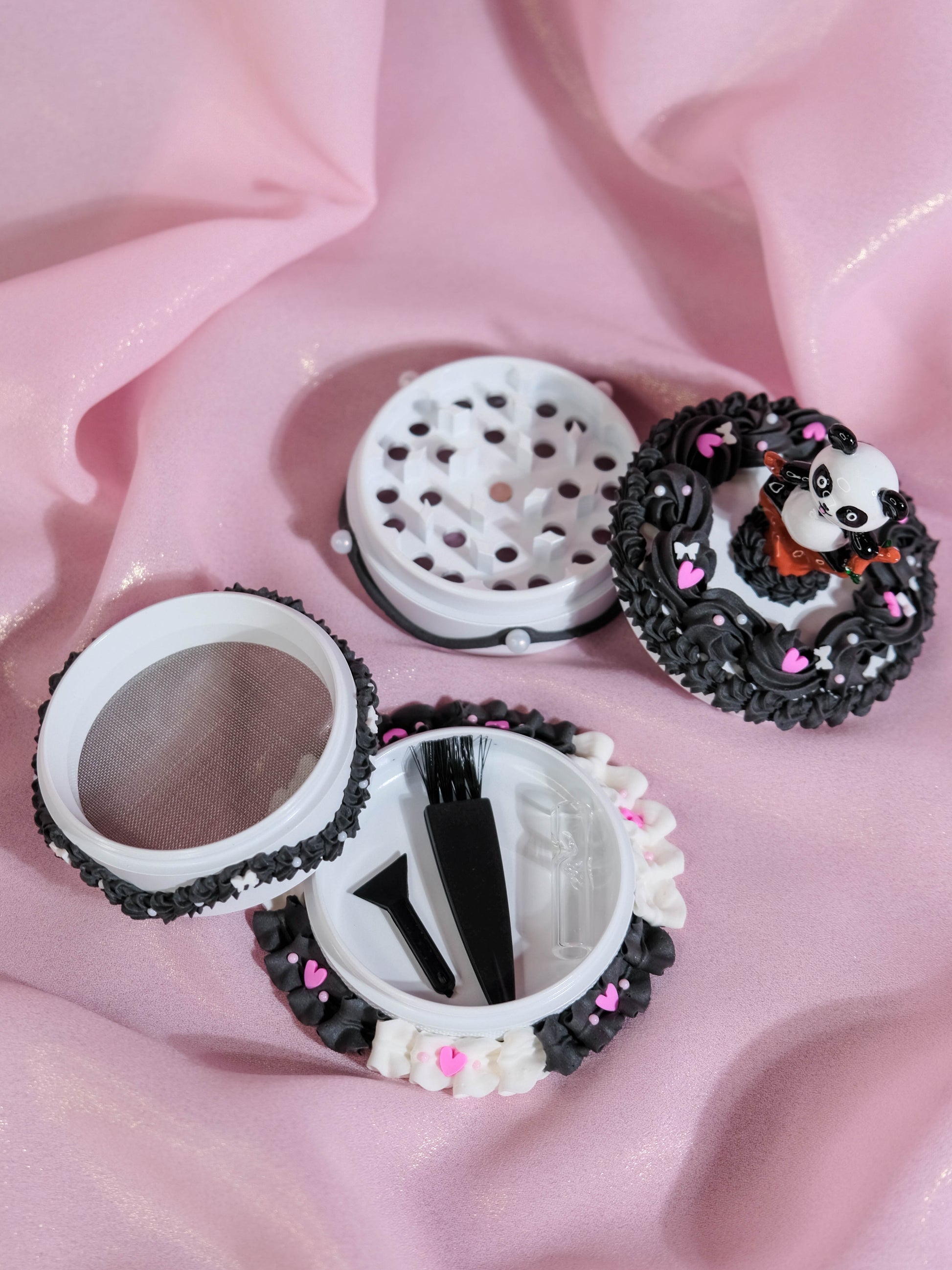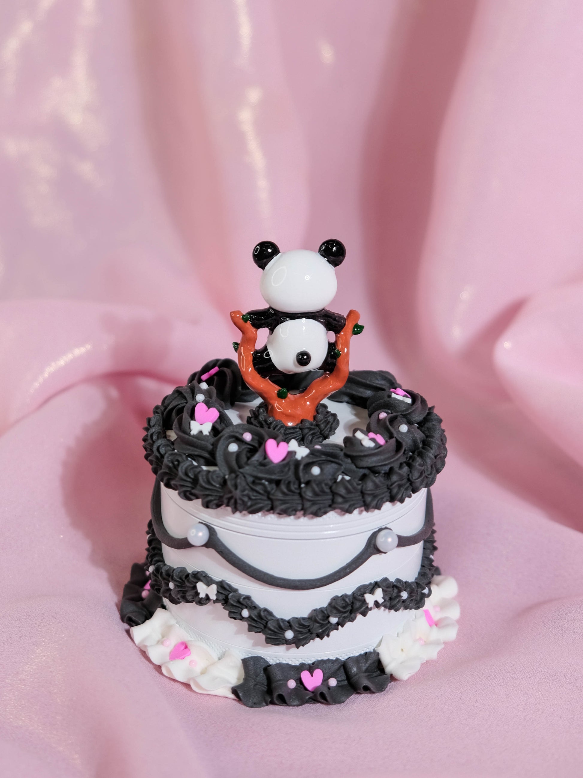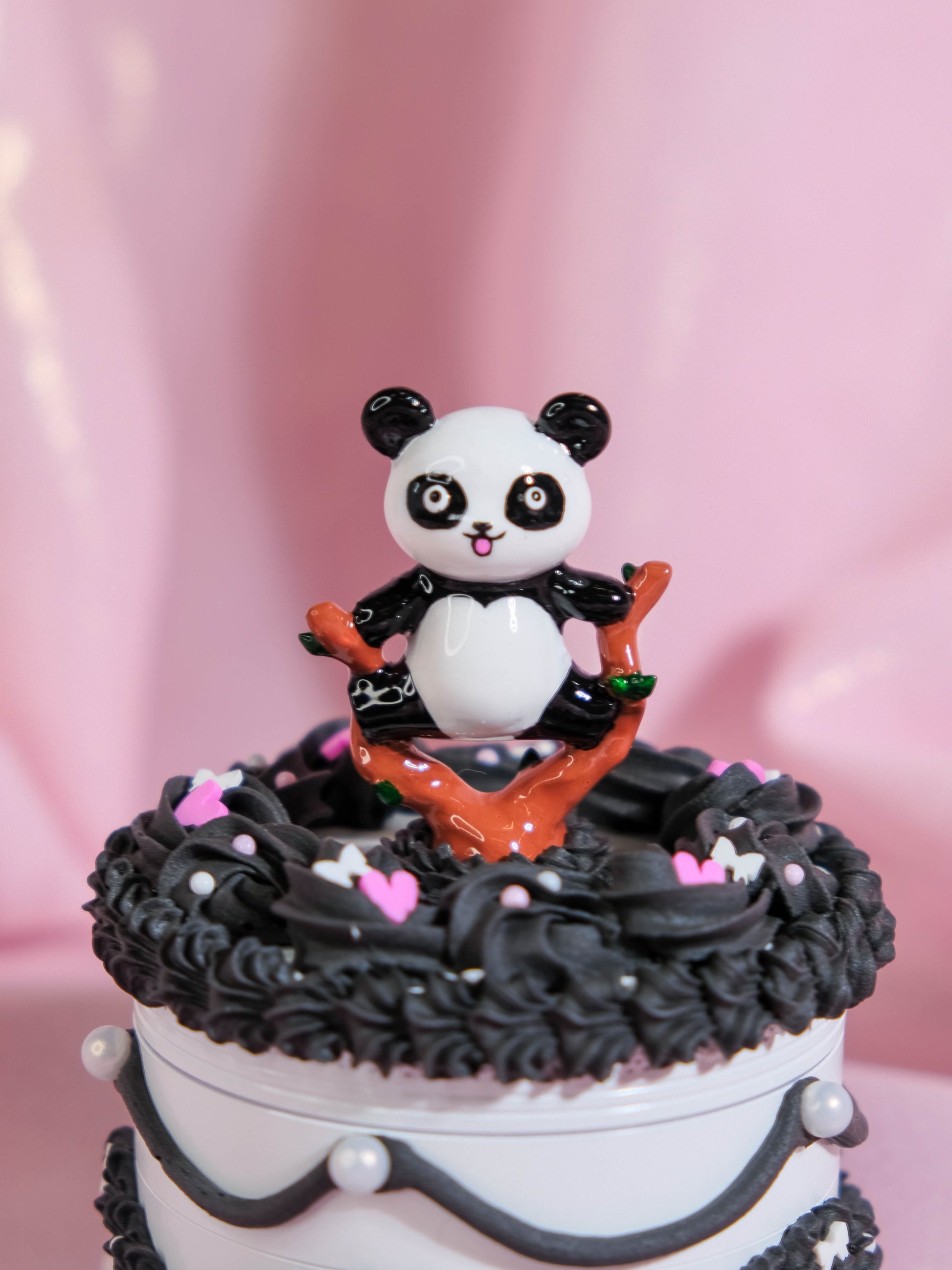 🎂 One of a kind Grinder in cake shaped disguise, with a touch of hand painted leg split Panda figure will make you smile 🐼