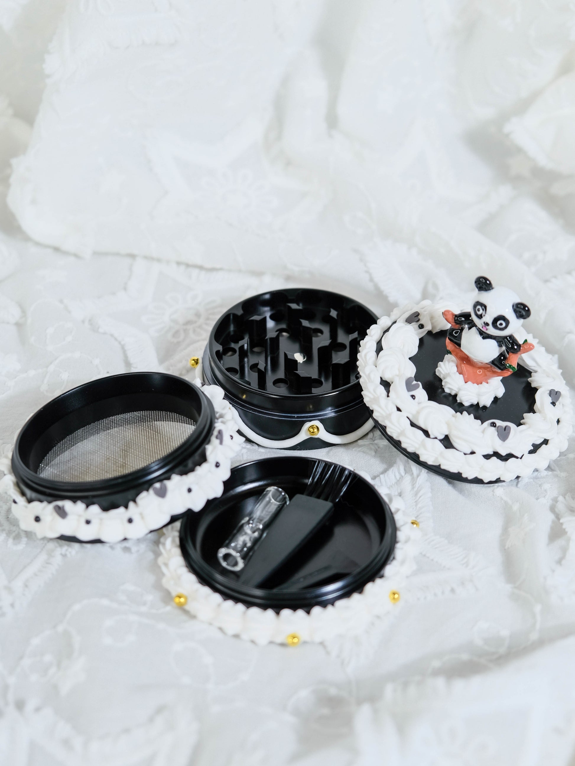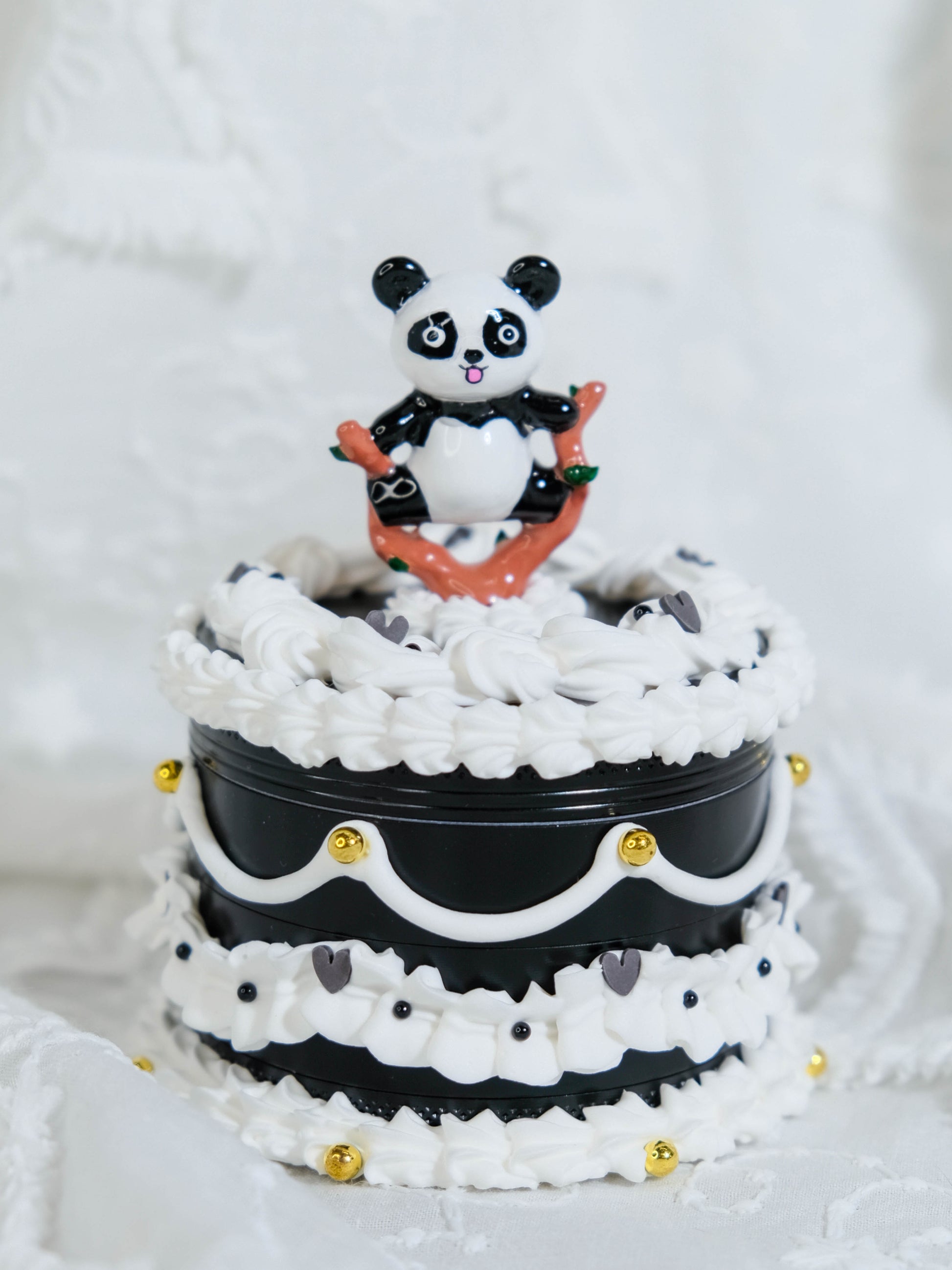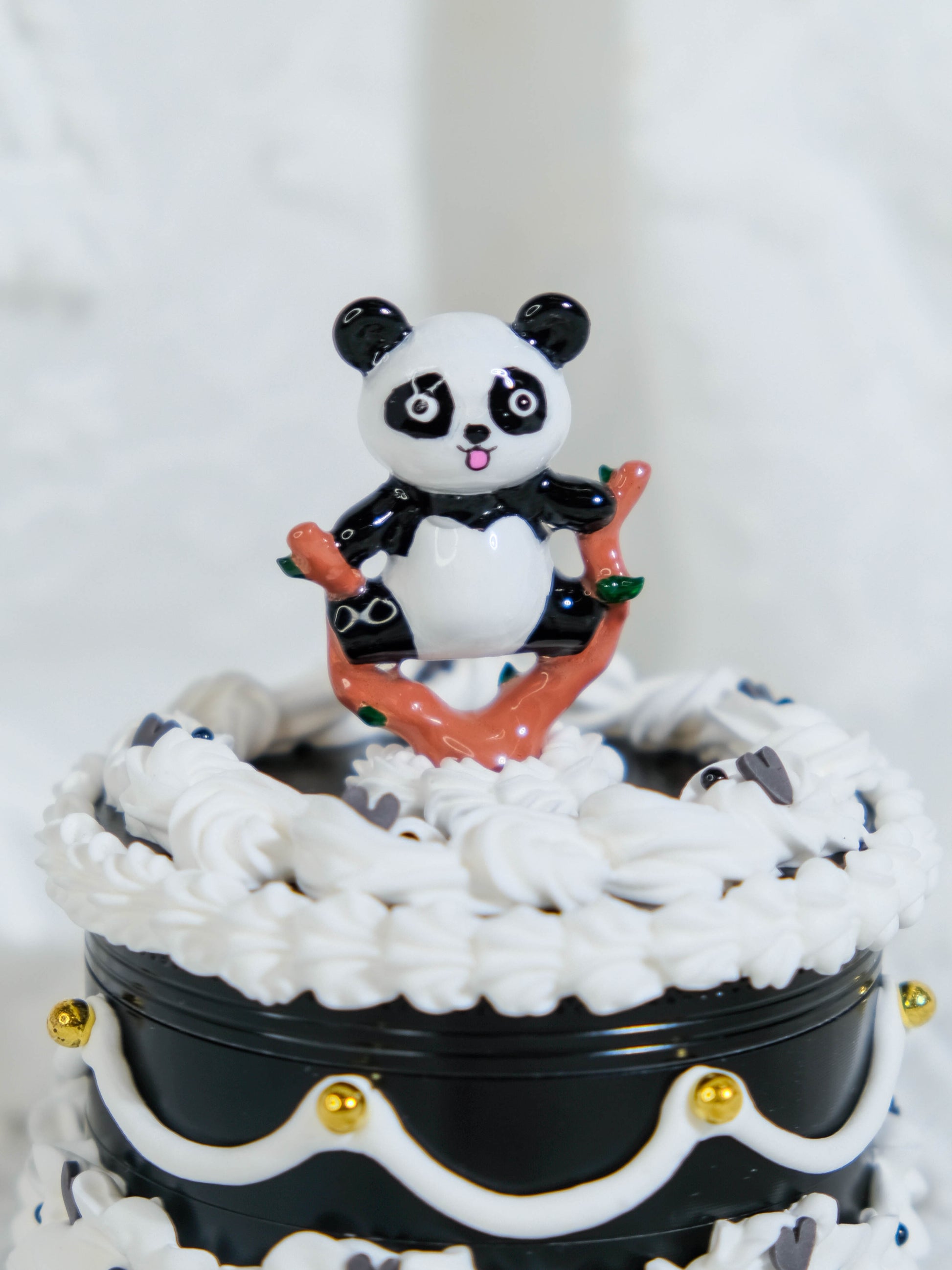 🎂 One of a kind Grinder in cake shaped disguise, with a touch of hand painted leg split Panda figure will make you smile 🐼