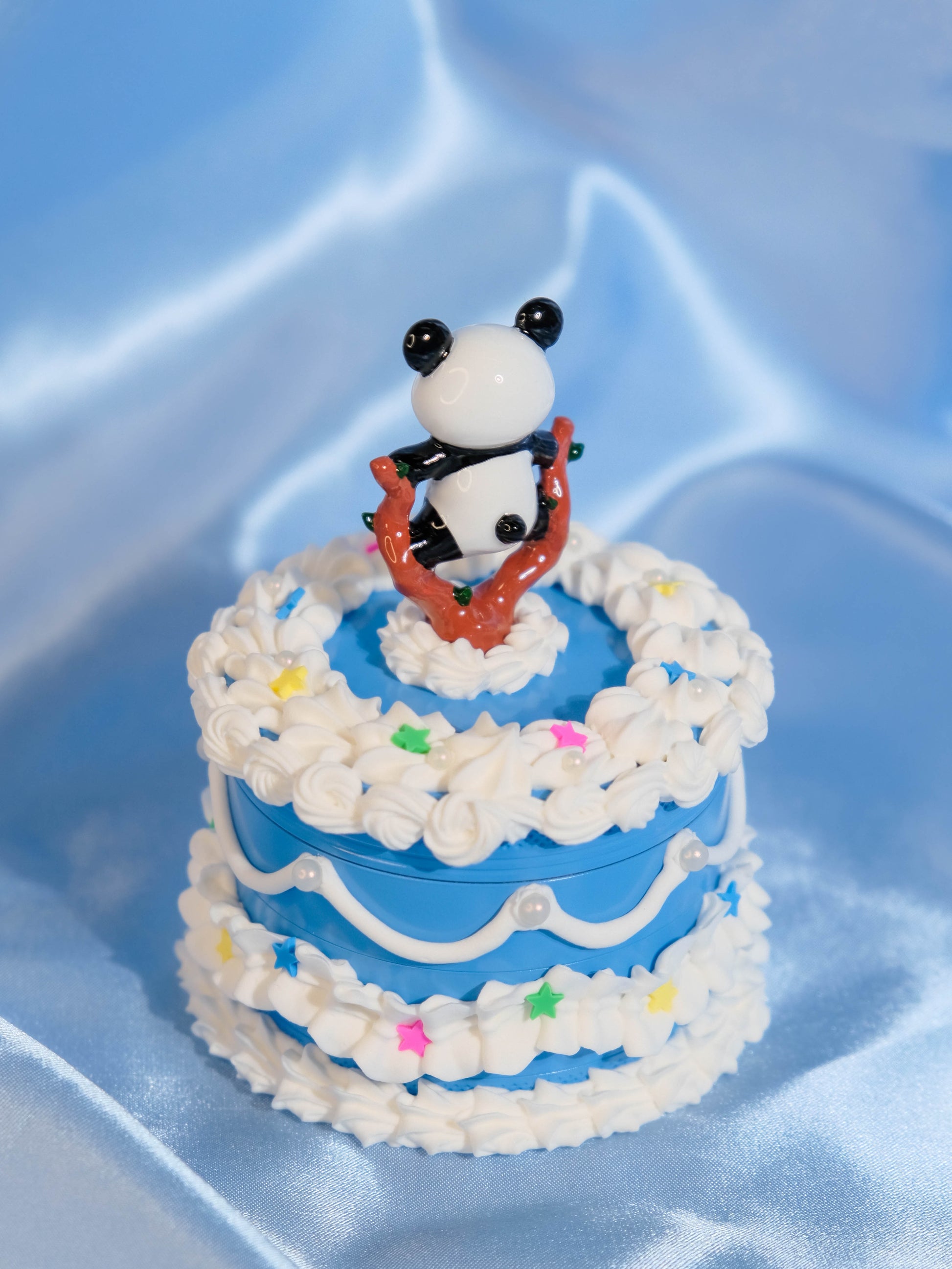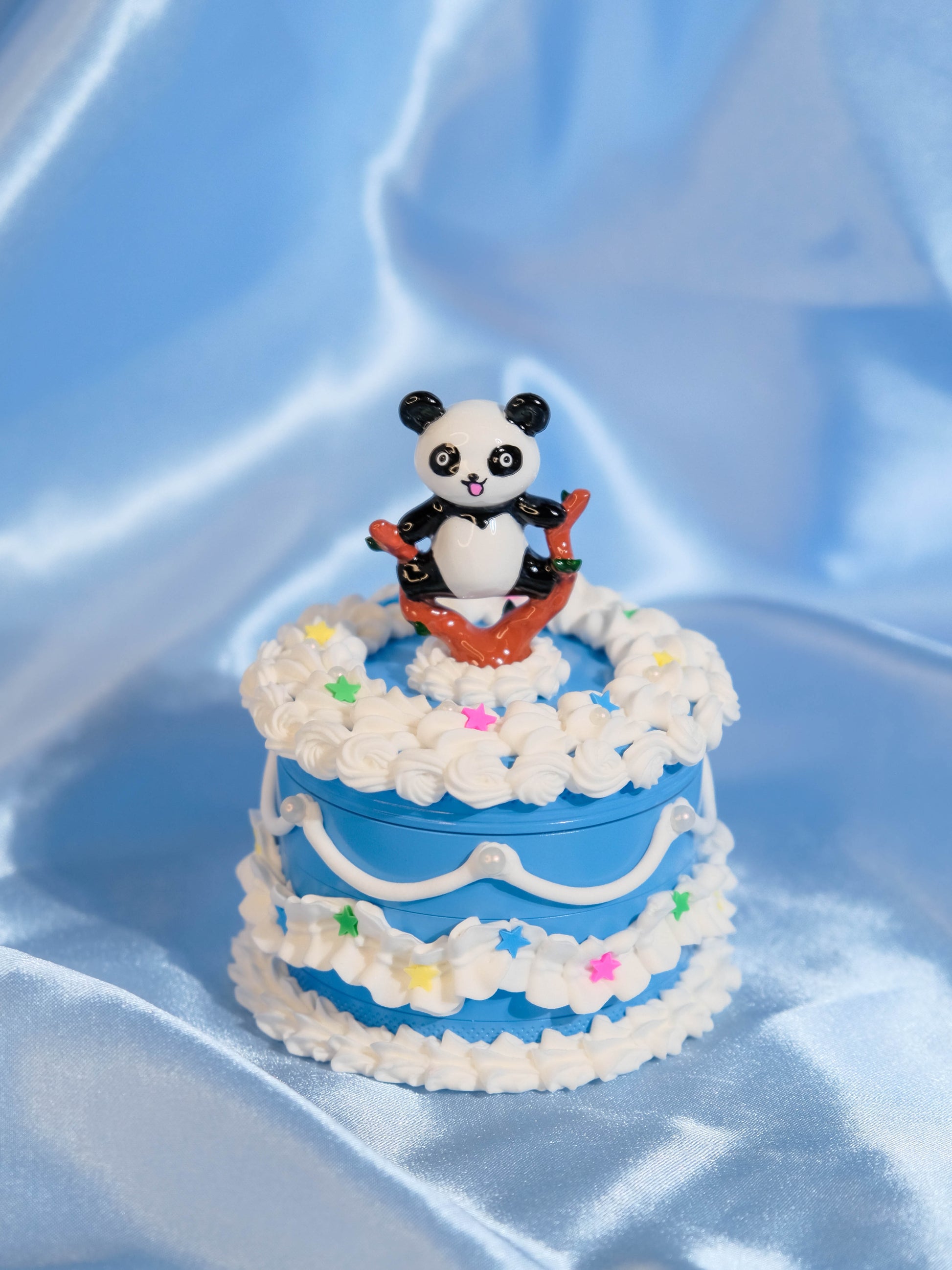 🎂 One of a kind Grinder in cake shaped disguise, with a touch of hand painted leg split Panda figure will make you smile 🐼