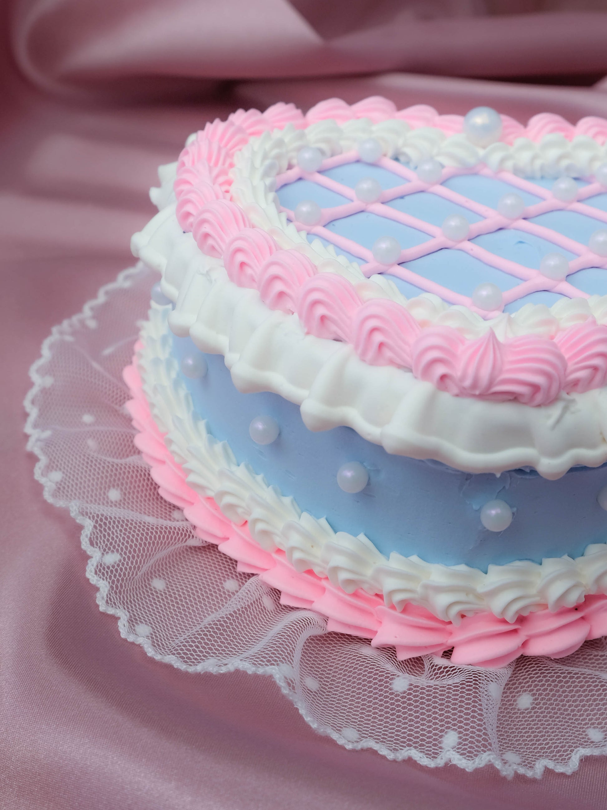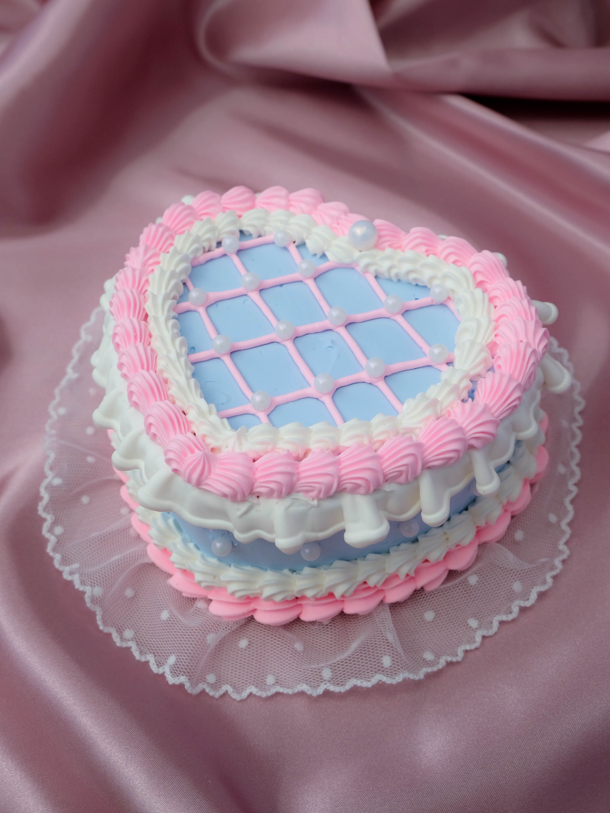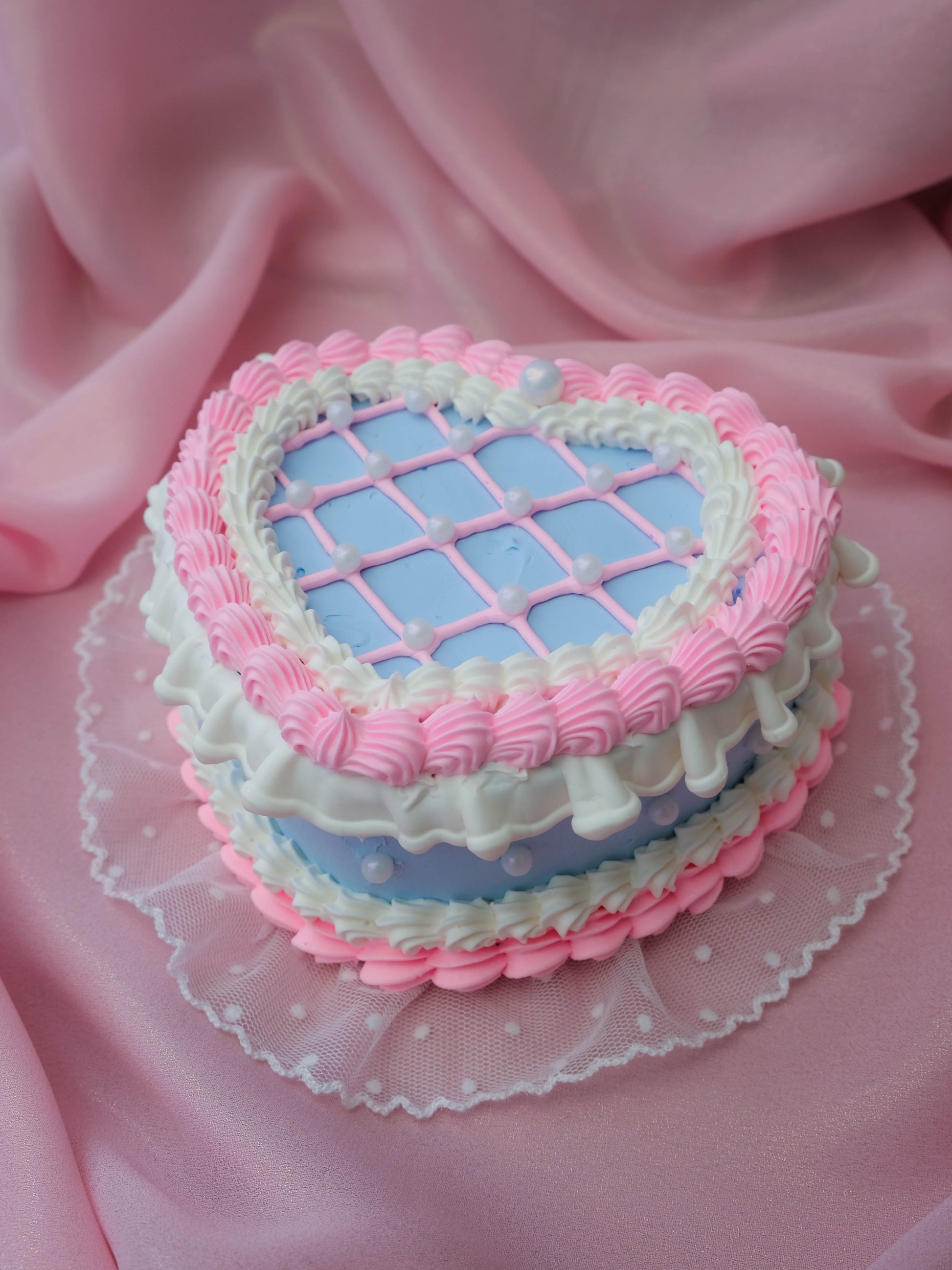 โค๏ธ A touch of lace ruffle on the bottom to elevate the elegance of the cake.