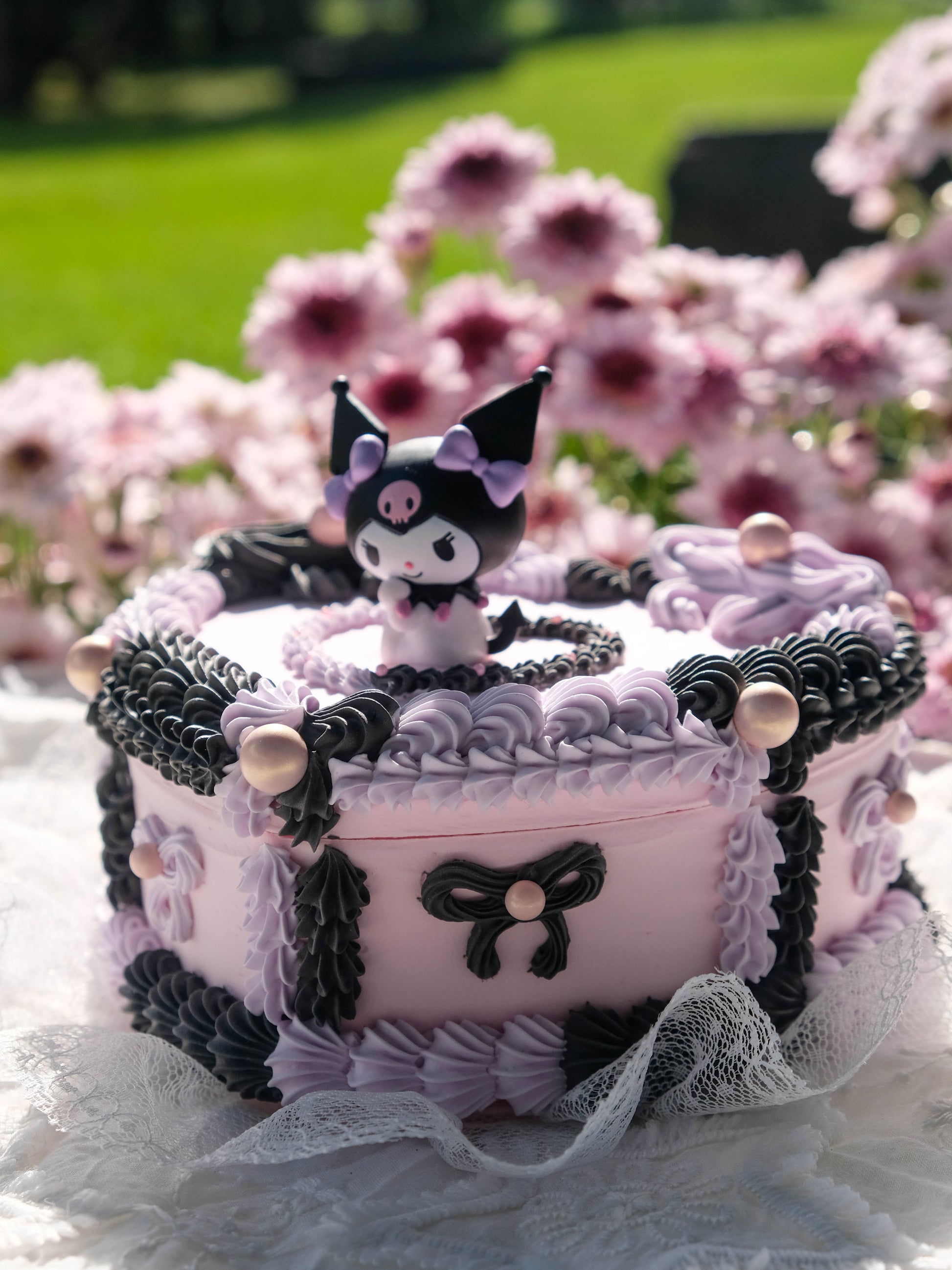 ๐ + ๐ One of a kind Jewelry Box Cake with a touch of Authentic Sanrio figure character - Kuromi, will give you a big smile everyday ๐